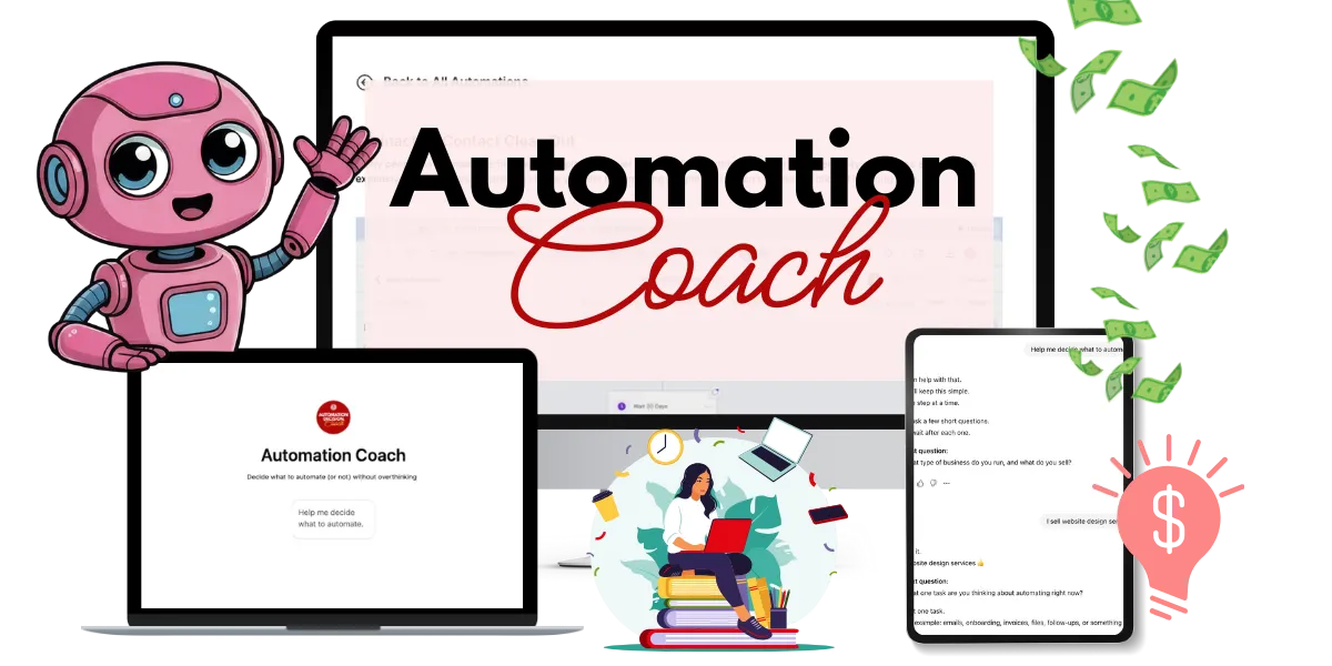 Instead of spending hours setting up automations you don’t need — or investing in support & tools before you’re ready — the Automation Coach gives you fast, tangible advice when you need it.